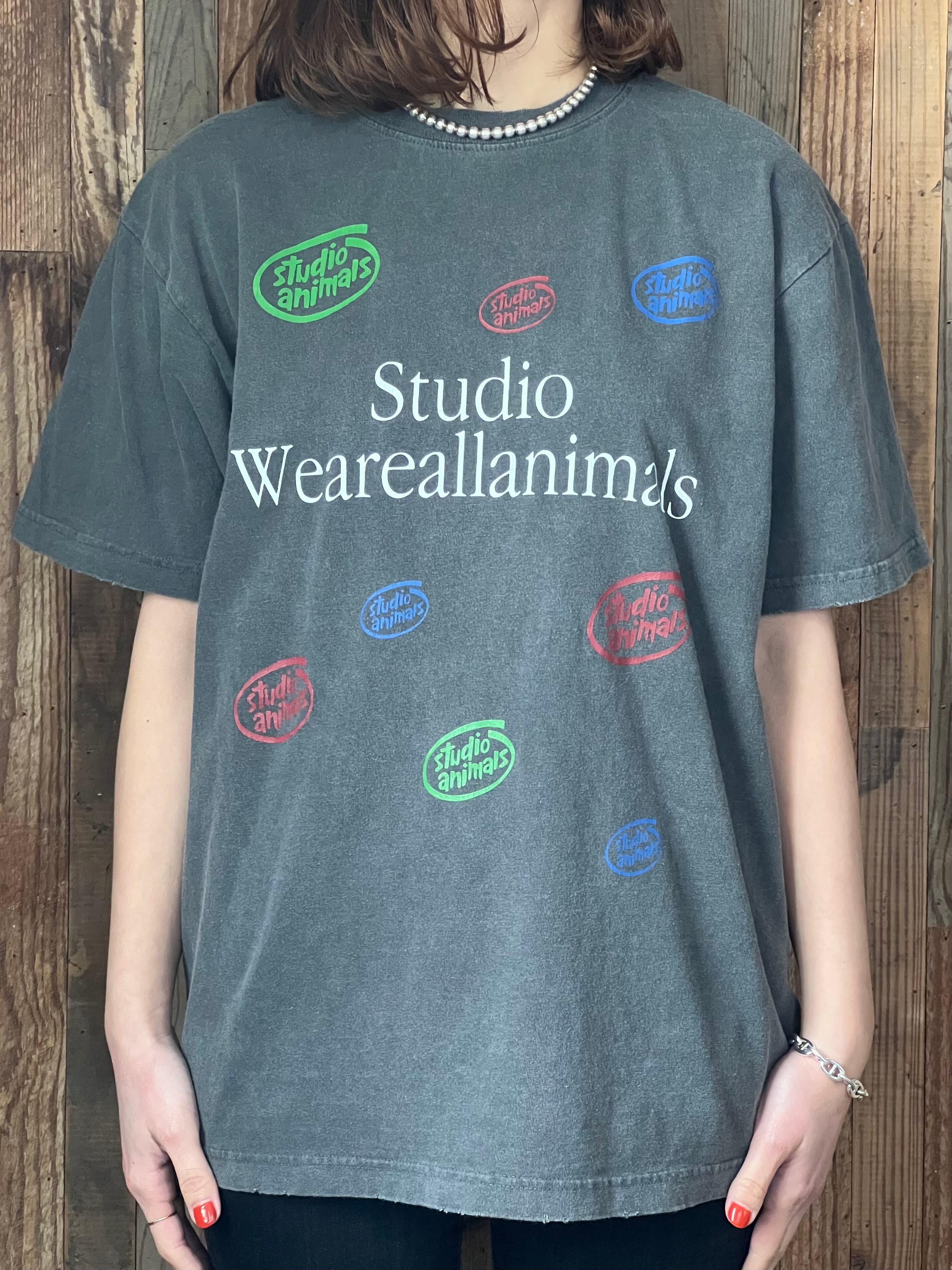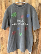 米国テクノロジー企業の90年代販促用Tシャツのオマージュ。プリントは染み込みプリント。ボールバイオウォッシュ加工によりUSEDの様な柔らかい肌触りを再現。襟、裾、袖口にライトなダメージ加工が施されている。