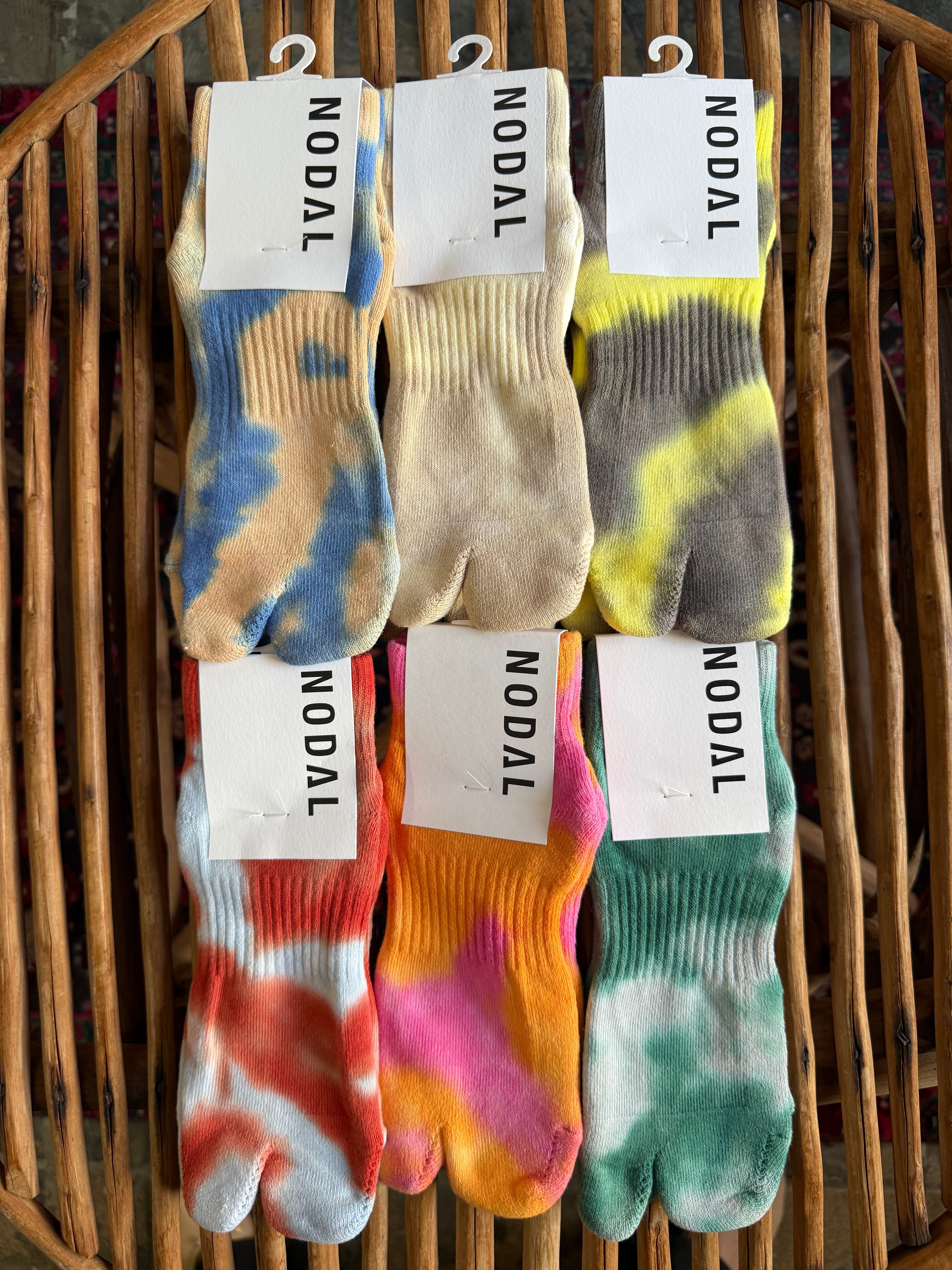 1足ずつ職人の手作業によるタイダイ染めを施しています。