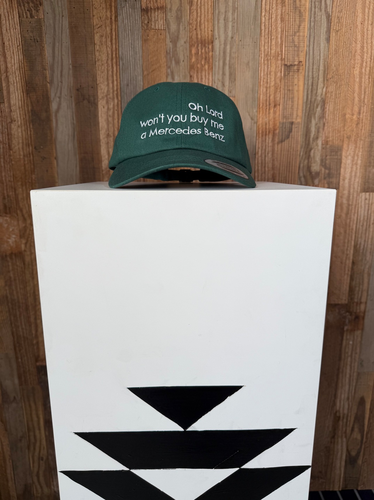 刺繍のメッセージは大好きな女性シンガーソングライターの大好きな曲の歌詞から引用しました。後ろのベルトでサイズ調整が可能です。