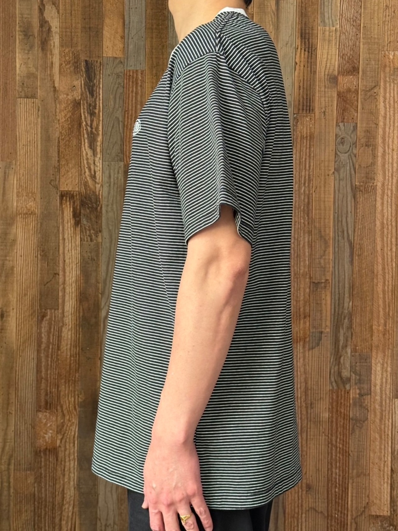 70'sボーダーTシャツを現代的なテイストにアレンジ。胸元の刺繍はオリジナルデザインのロゴ。オリジナルパターンのコットン100%ボディ。
